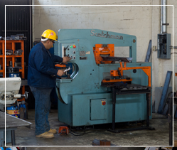 En el área de habilitado contamos con el Metalero Universal Scatchman, el cual sobresale por su versatilidad y está equipado con sus cuatro estaciones de trabajo, punzonado, troquelado, corte de palca y ángulo la utilizamos para el habilitado de bastidores, cortes de ángulos, soleras, sujetadores y grapas.