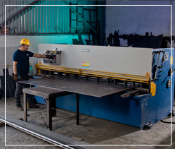 Cizalla o guillotina hidráulica de doble acción, utilizada para corte de placa (es muy rápida y precisa), no deja rebaba o escoria en el corte, fácil operación y seguridad para el operario, mayor agilidad al proceso de fabricación de elevadores industriales.
